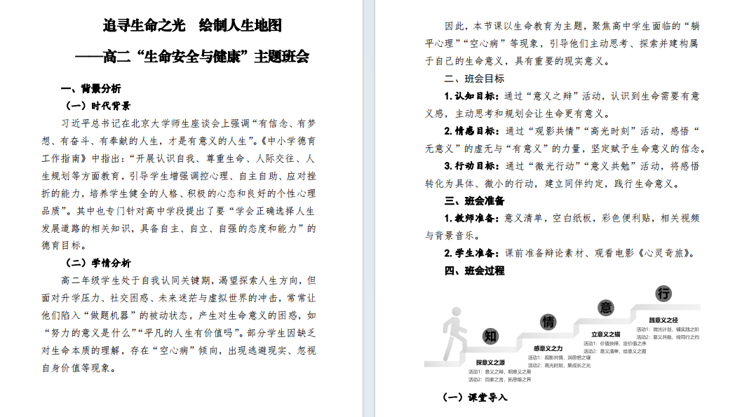 追寻生命之光 绘制人生地图 ——高二“生命安全与健康”主题班会pdf 11pages