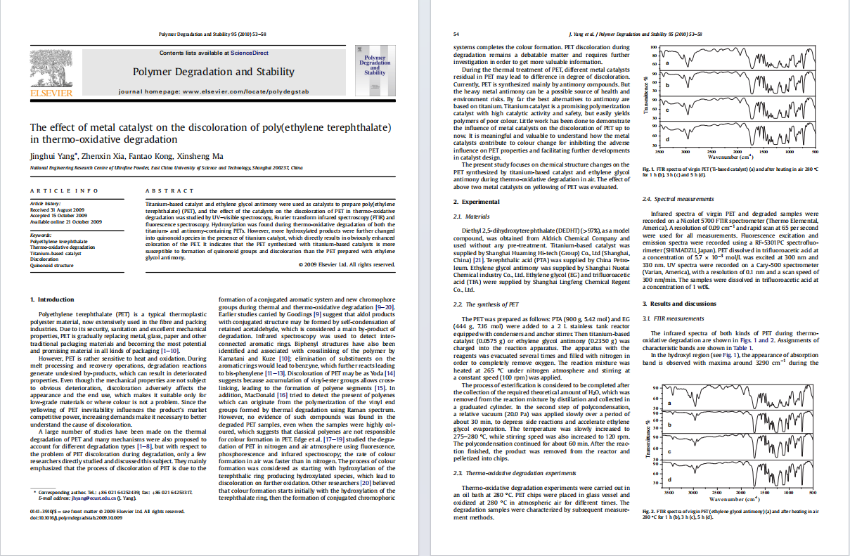 The effect of metal catalyst on the discoloration of poly(ethylene terephthalate)